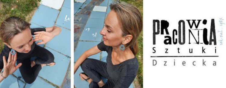 Trzy obrazy Katarzyny Derkacz-Grajewskiej w tle i chodnik w kształcie „ryby”…