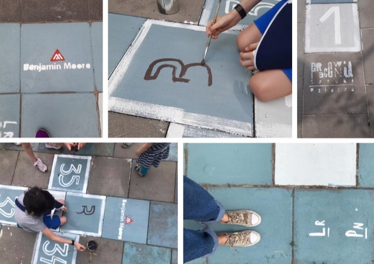 Przygotowania do imprezy rozpoczęliśmy znacznie wcześniej. Pracownicy Benjamin Moore Polska wraz z Katarzyną Derkacz – Gajewską, artystką, właścicielką „Pracowni Sztuki Dziecka” stworzyli na placu Rembowskiego przestrzeń do aktywnego spędzania czasu dla dzieci i dorosłych.