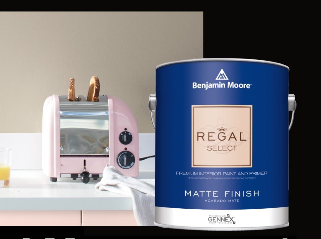 Twój naturalny wybór to farba REGAL SELECT 548 amerykańskiej marki Benjamin Moore. Totalnie odporna na plamy, a przy tym ekologiczna - w formule „ZERO LZO"*.