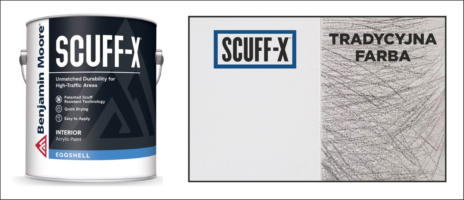 Udowodniliśmy, że farby z rodziny SCUFF-X przeciwstawią się uderzeniom walizek i czarne ślady nie będą już zakłócały estetyki ścian. SCUFF-X® jest niezastąpiony w przymierzalniach, biurach i hotelach, szkołach i uczelniach, przychodniach, centrach handlowych czy intensywnie eksploatowanych domowych przestrzeniach - korytarzach, garderobach oraz schowkach.