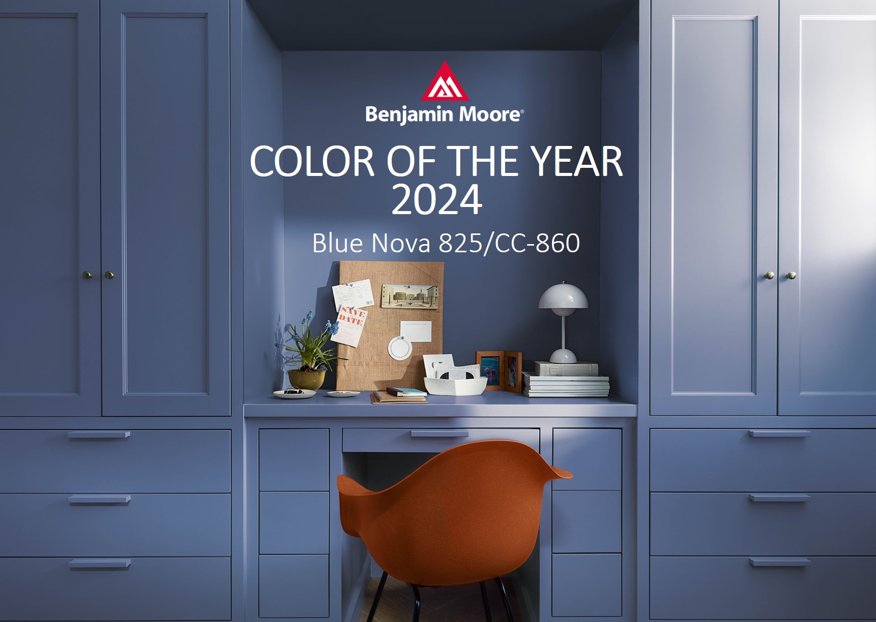 Blue Nova 825 is an approachable, almost trustworthy hue that can be applied to a kitchen island, cabinetry, or even the front door. “There is a lot you can do with it”, Andrea Magno says. “I love the idea of using it in a matte finish to have this velvety feel and really appreciate the depth of it”. She also recommends a semi-gloss or satin for adding softness to a bedroom or dining room.