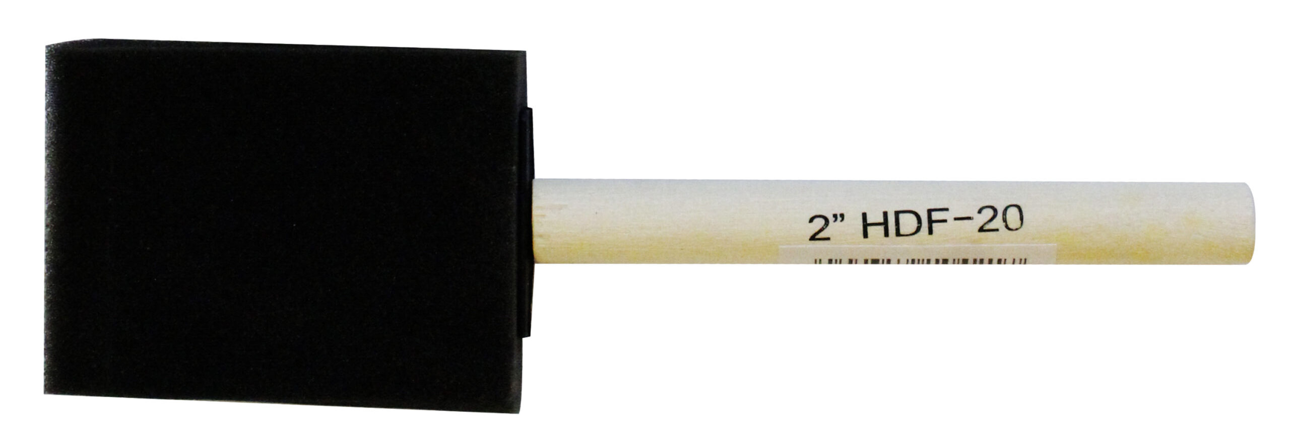 Premium high-density, closed-cell foam brush High Density Foam Brush 2", 50 mm wide with round sanded wood handle.