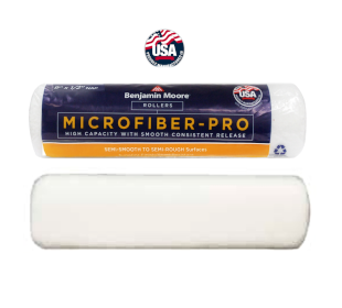 The PREMIUM quality, Benjamin Moore’s roller cover 9" x 3/8" Microfiber-Pro Roller Cover, 230 mm wide (9") intended for smooth to semi-smooth surfaces painting (10 mm).