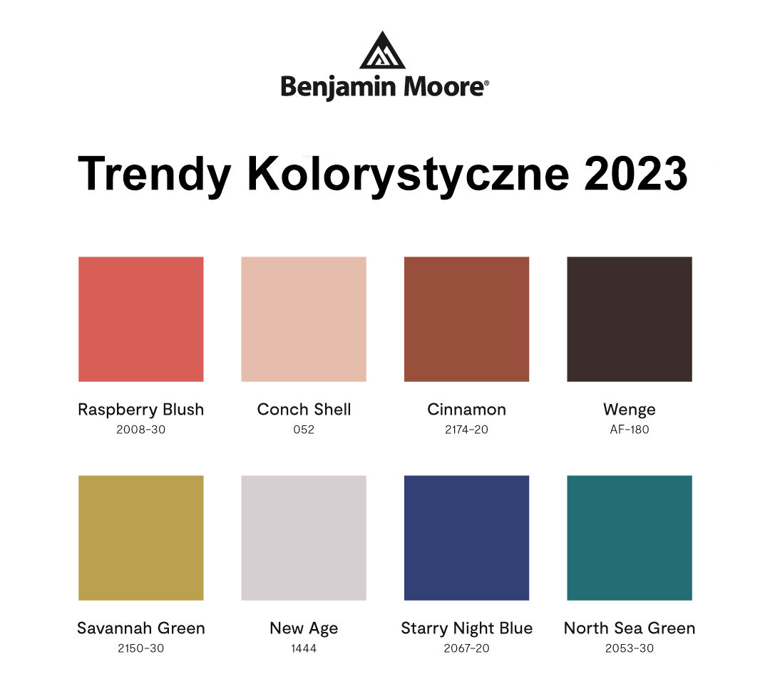 Koral, terakota, czerwienie z nutą pomarańczy, intrygujące odcienie niebieskiego oraz soczysta, cytrusowa zieleń. Te barwy zwróciły szczególną uwagę Łowczyń Trendów marki Benjamin Moore podczas wyboru palety na kolejny sezon.