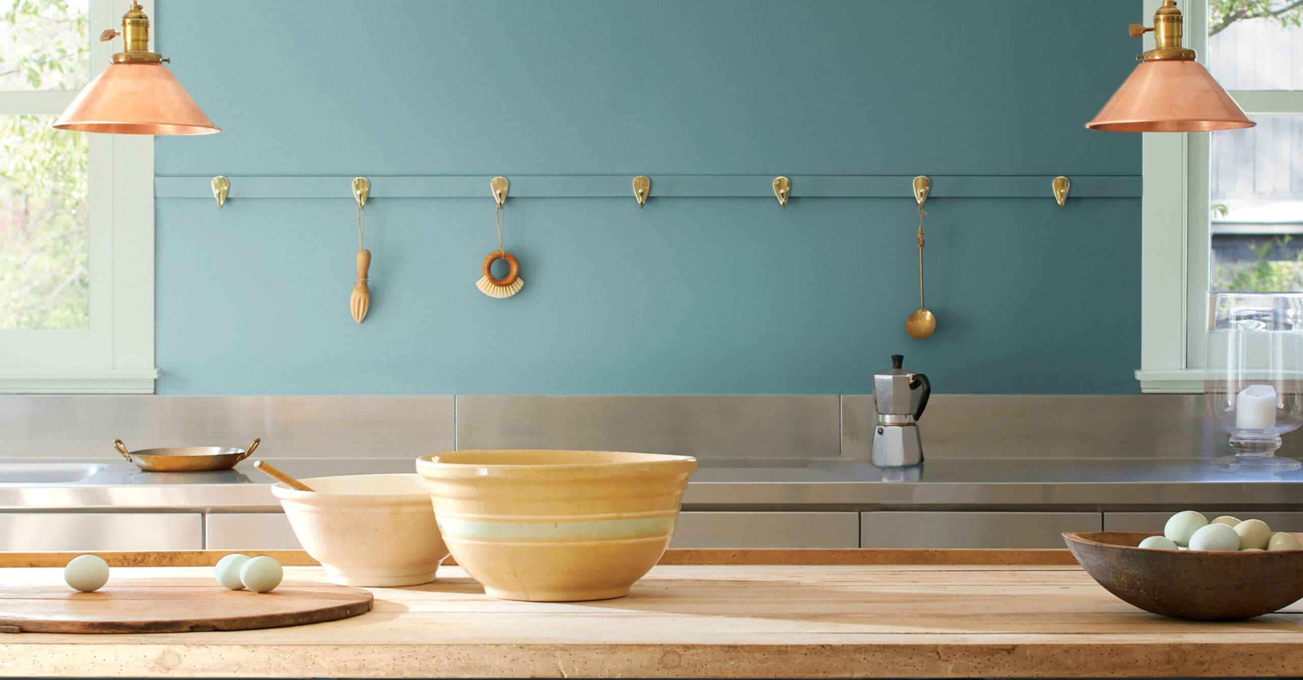 Paleta COLOR TRENDS 2021 czerpie inspiracje nie tylko z odcieni natury, ale także z kolorów spotykanych w kuchni, stanowiącej obecnie centralny punkt każdego domu. To właśnie do tej przestrzeni przenosi się częściowo praca i nauka zdalna.