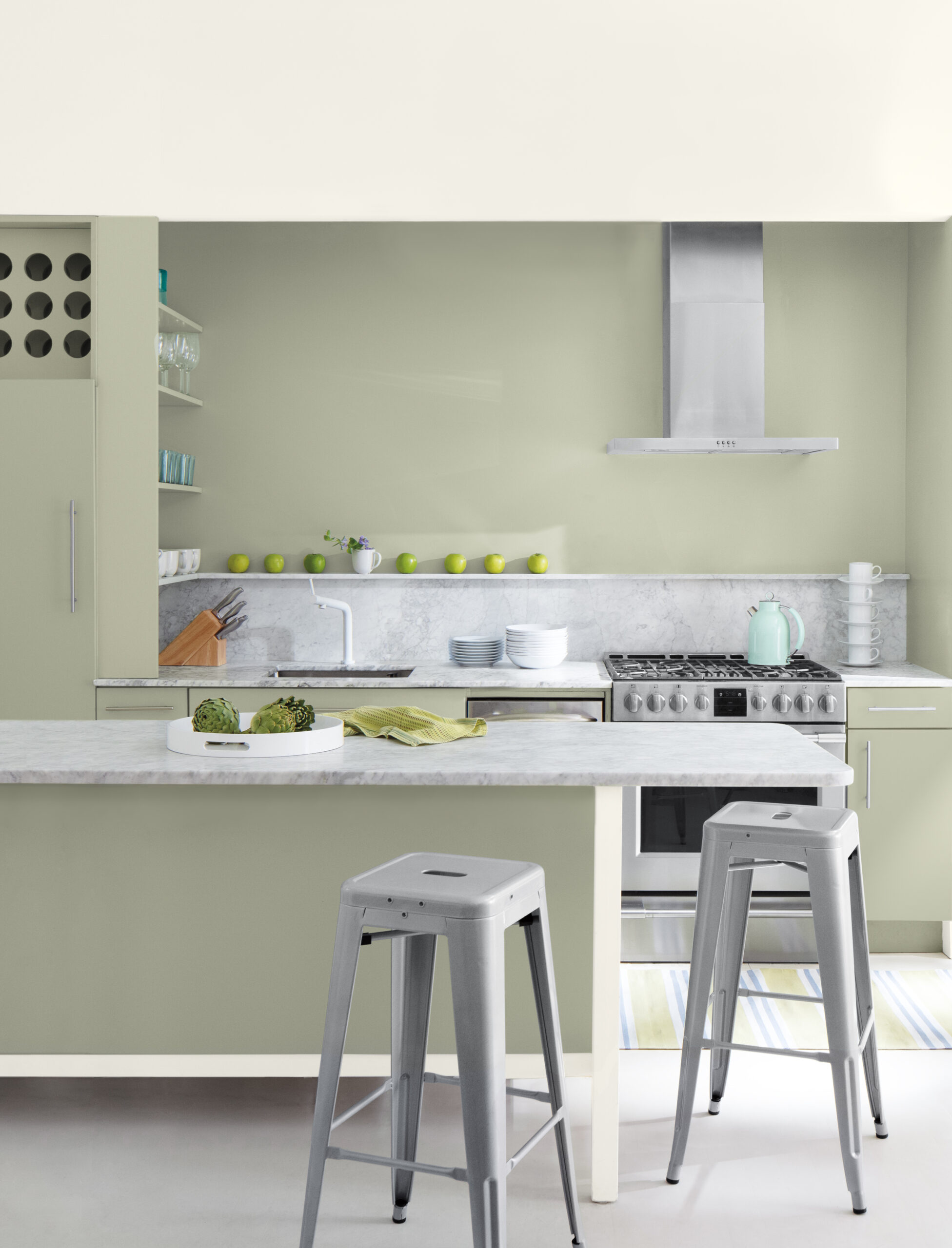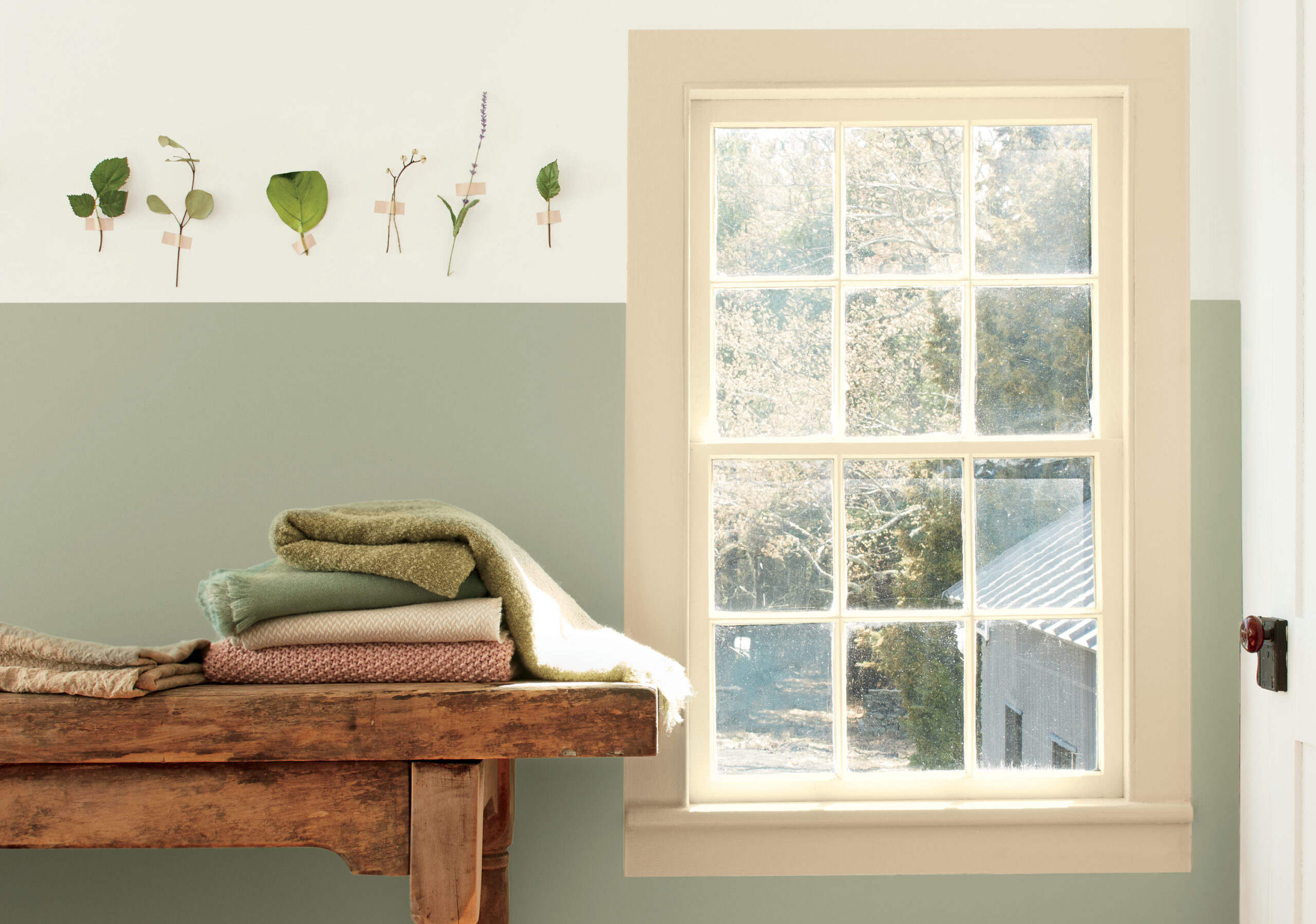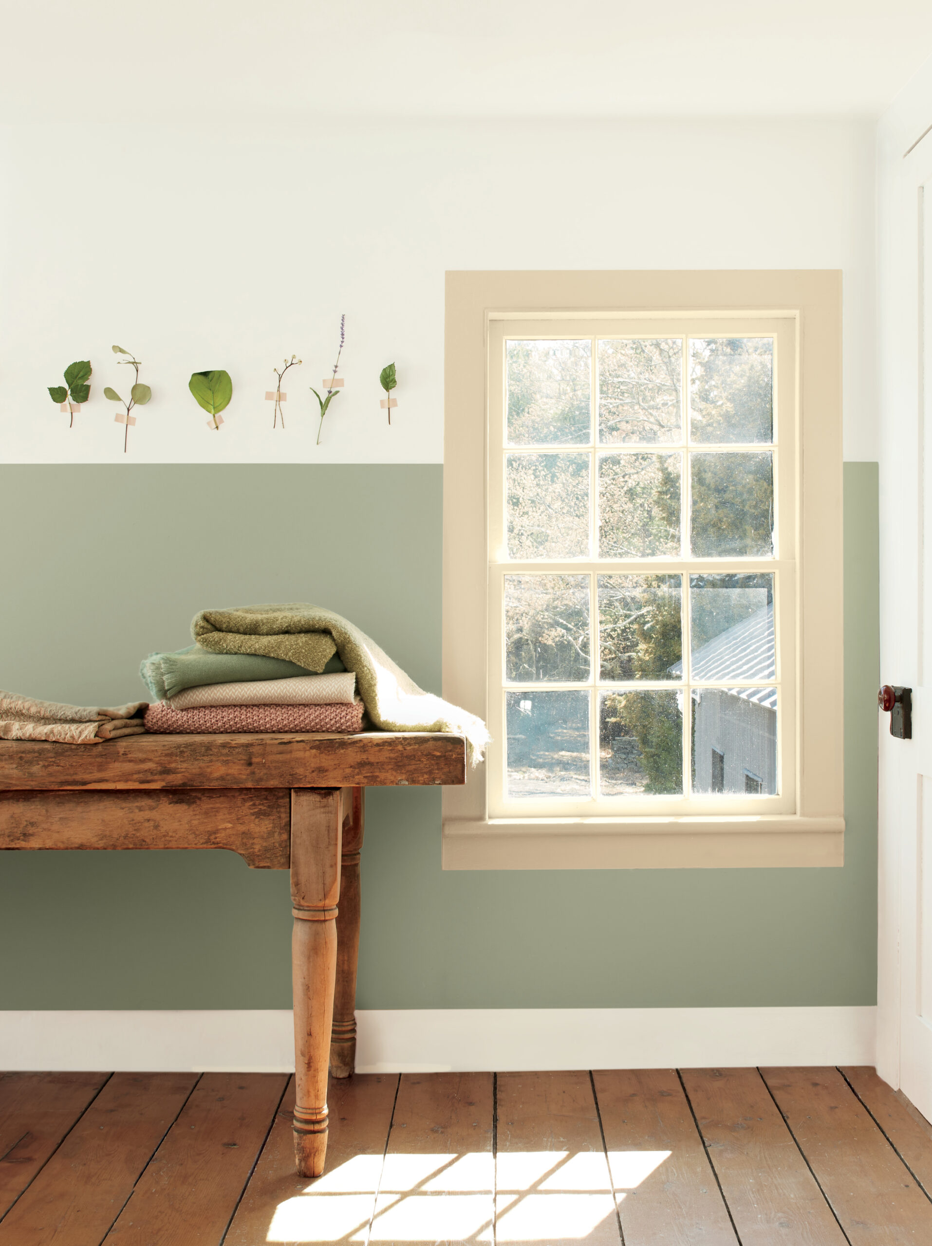 „October Mist 1495”, delikatna, sympatyczna szałwiowa zieleń, która stanowi swego rodzaju „pomost” do innych kolorów.