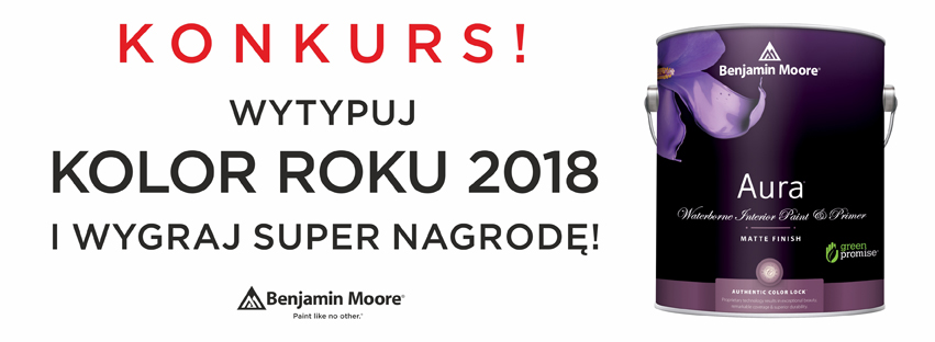 Już niedługo dowiemy się, który z ponad 3500 odcieni marki Benjamin Moore zostanie KOLOREM ROKU 2018. Jeśli Ty również nie możesz doczekać się tego dnia, zapraszamy do wspólnej zabawy konkursowej!