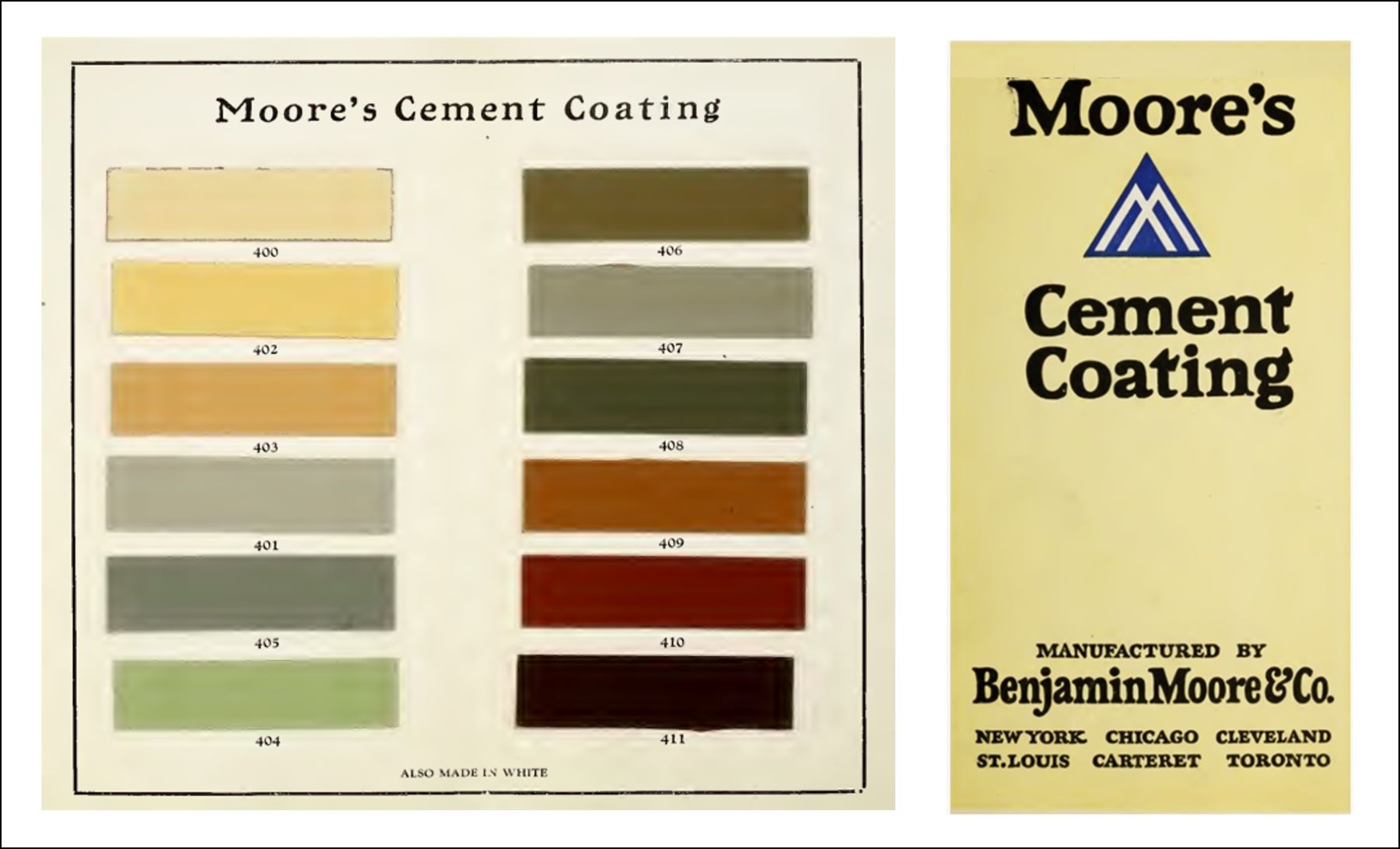 Dostępna była również farba cementowa „Moore’s Cement Coating” w palecie 12 odcieni.