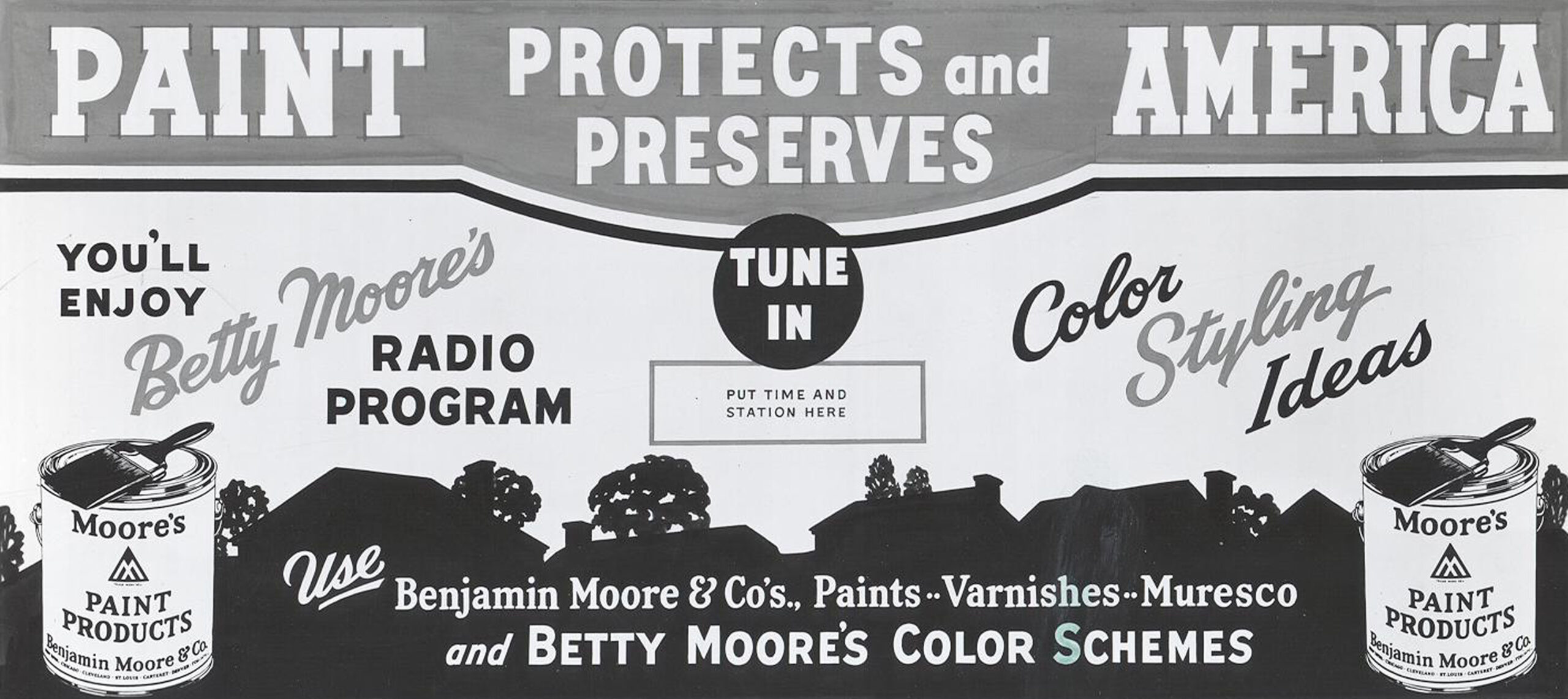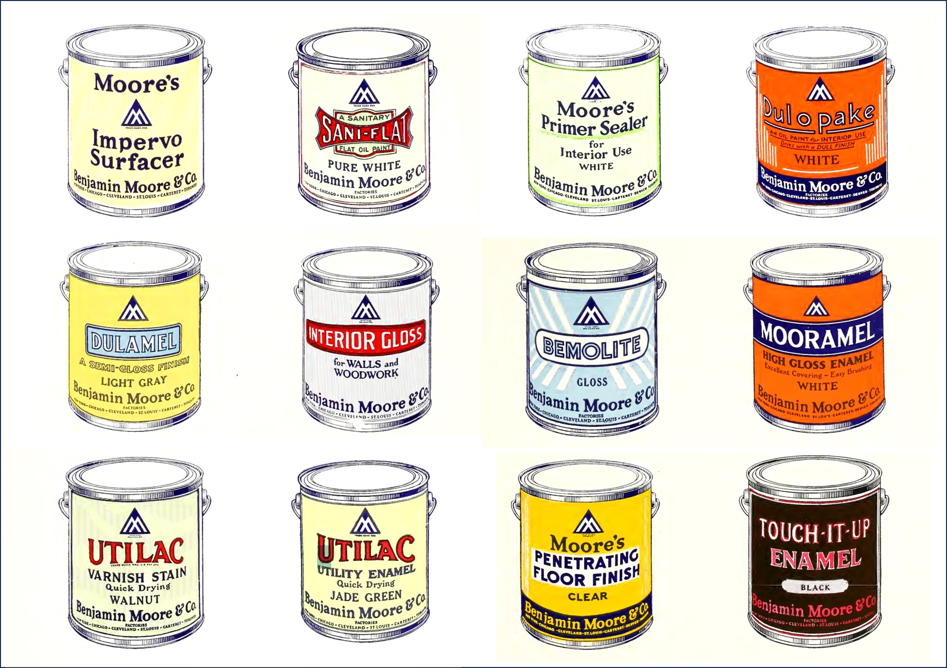 Trudno jednoznacznie zidentyfikować pierwszy, oficjalny logotyp Benjamin Moore & Co.. Wszystko wskazuje na to, że został opracowany w roku 1917 przez firmową agencję reklamową.