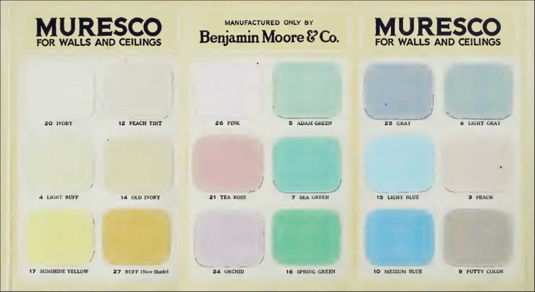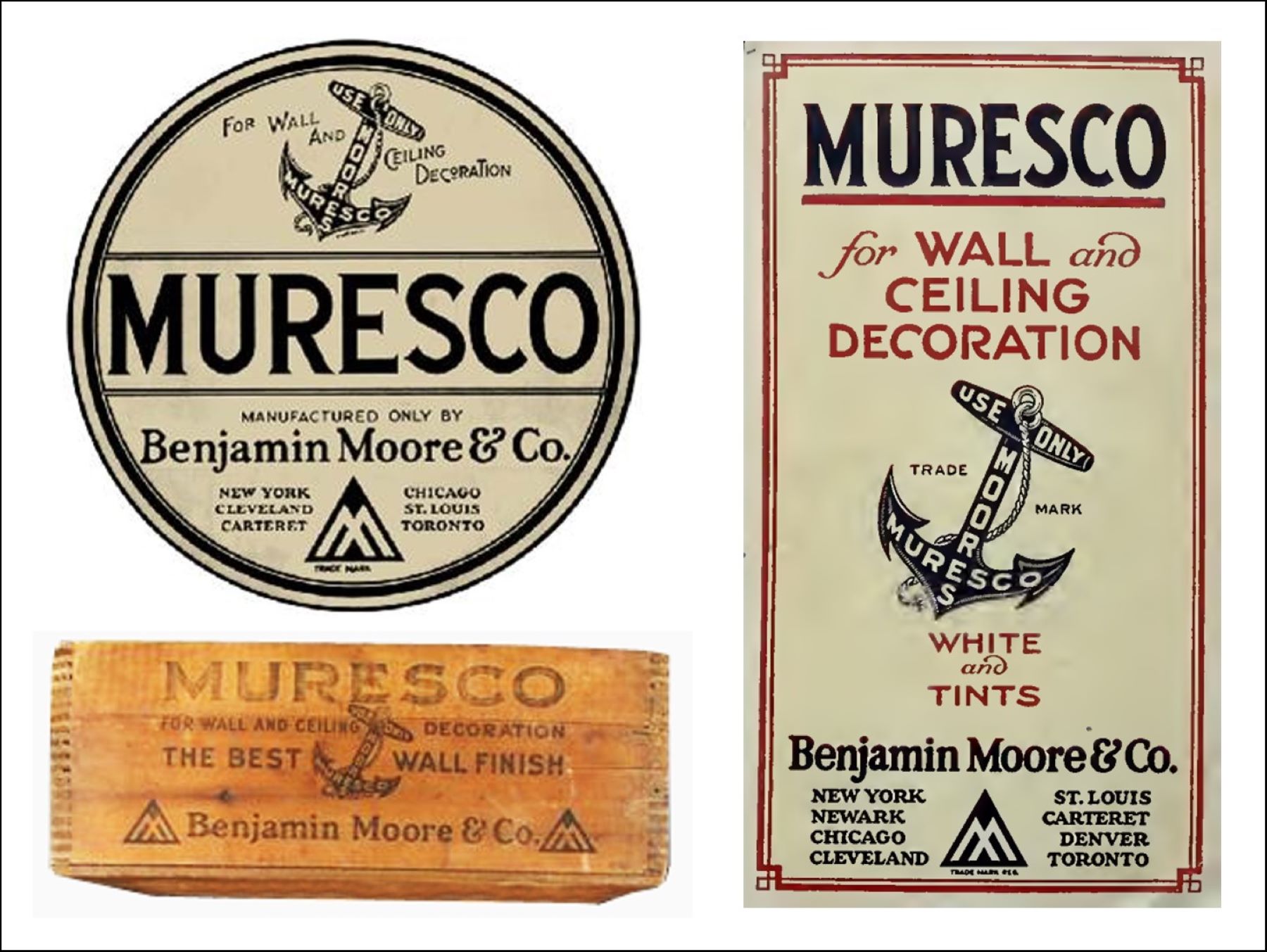 W 1892 roku Benjamin Moore wprowadził na rynek innowacyjny produkt „MURESCO, farbę typu „calsomine paint” (modyfikacja farby klejowej), dostępną w kolorze białym i palecie 18 atrakcyjnych odcieni. Ta farba również produkowana była w formie proszku, jednak wymagała dodatku gorącej wody.
