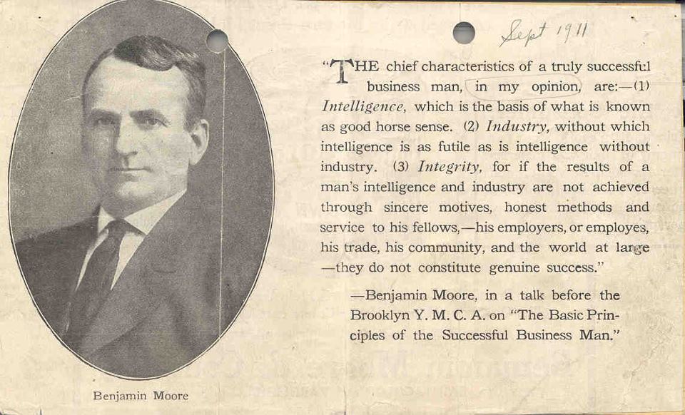W styczniu 1883 roku bracia Benjamina i William założyli firmę „Moore Brothers Paint Company”, która mieściła się w niewielkim lofcie przy Atlantic Avenue nr 55 w Brooklynie.