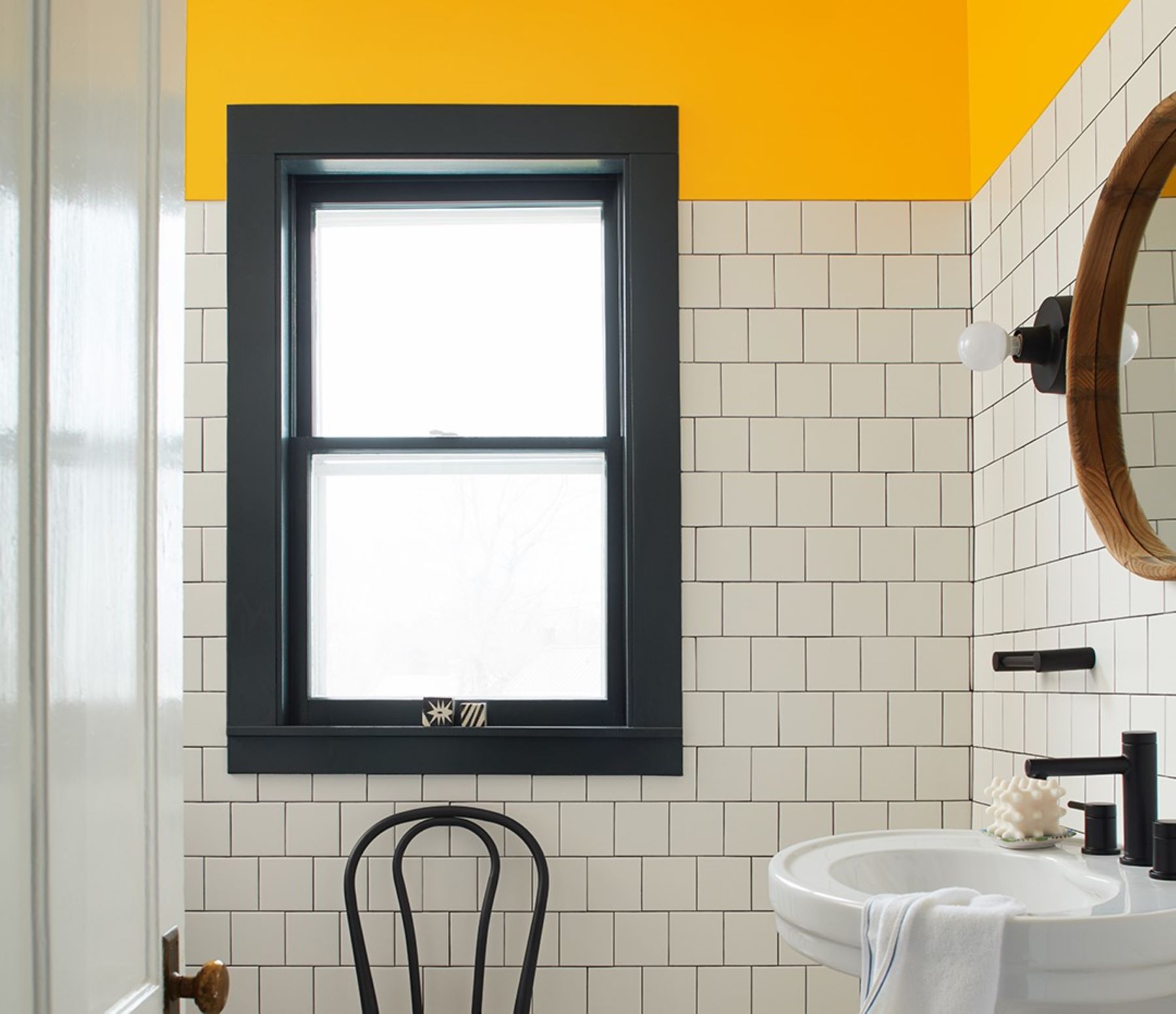 Prawda że uroczo wygląda ten żółty sufit w łazience?