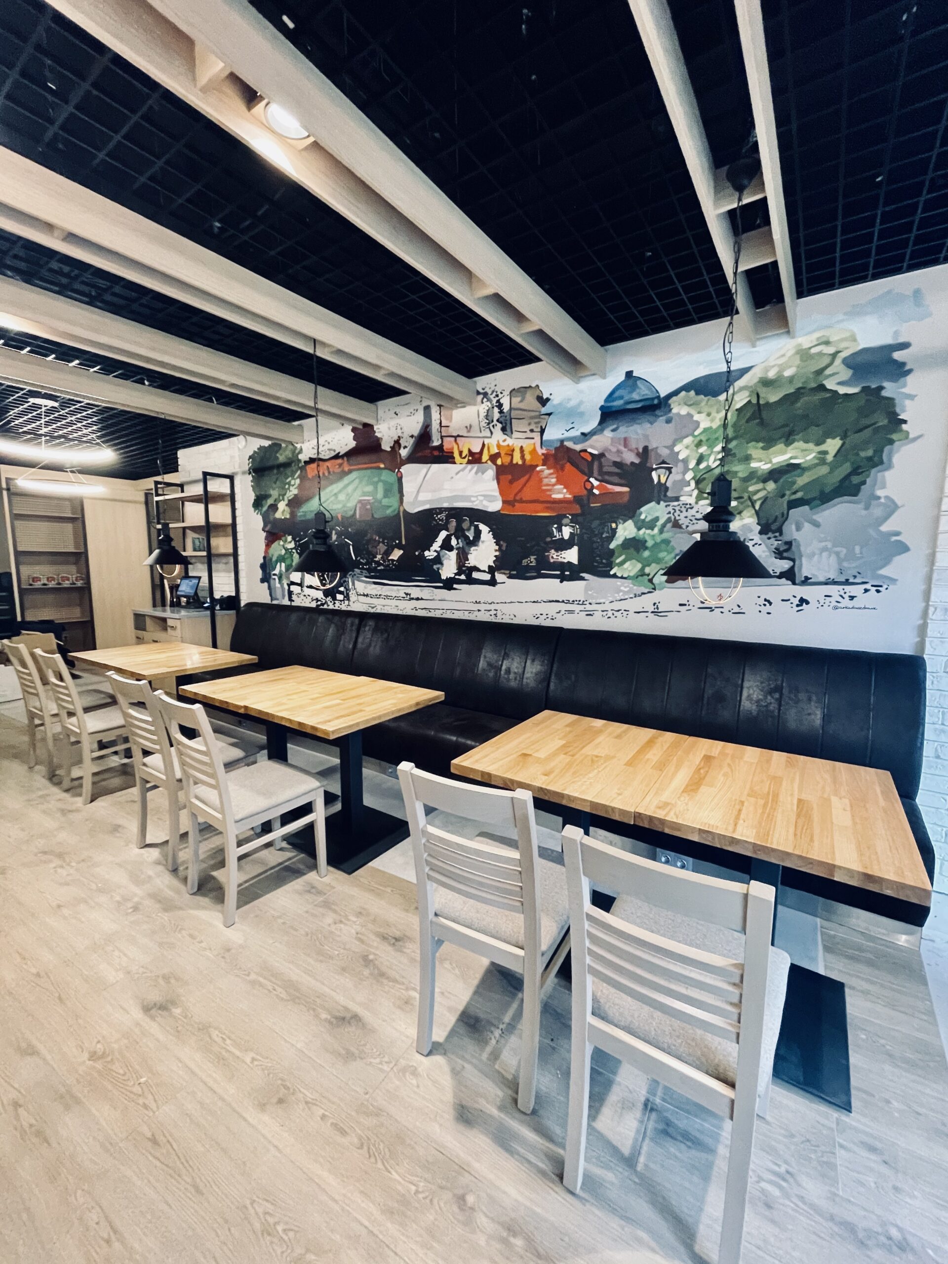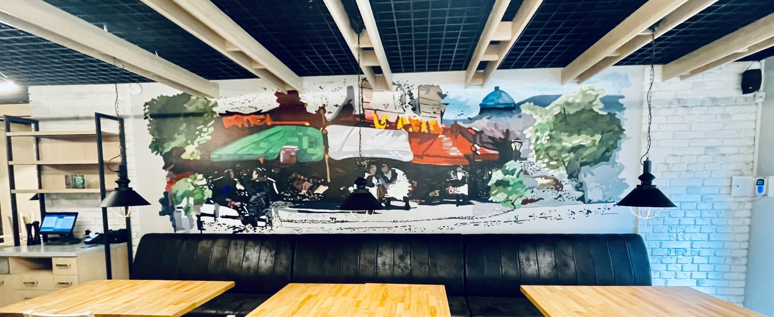 A.D.: Murale zacząłem malować jeszcze za czasów mojej nauki w Liceum Plastycznym w Gdyni Orłowie. Znajoma poprosiła mnie, abym namalował w pokoju jej syna scenę z bajki ,,Kubuś Puchatek’’. Później urodził jej się kolejny syn i dla niego namalowałem motyw z bajki ,,Gdzie jest Nemo’’. I tak pocztą pantoflową otrzymywałem kolejne zlecenia wykonywane dla przychodni lekarskich, przedszkoli. Gdy rozpocząłem studia na Akademii Sztuk Pięknych w Gdańsku zabrakło mi czasu na malowanie murali i zarzuciłem temat… Prawdziwy boom na ten rodzaj sztuki zaczął się podczas pandemii. Zamknięto lokale gastronomiczne, a ludzie pozamykani w swoich czterech ścianach poczuli potrzebę zmiany otoczenia i dekorowania swoich mieszkań. Zaczęli budować w nich oazy spokoju i odpoczynku, ale także przestrzenie do pracy zdalnej.