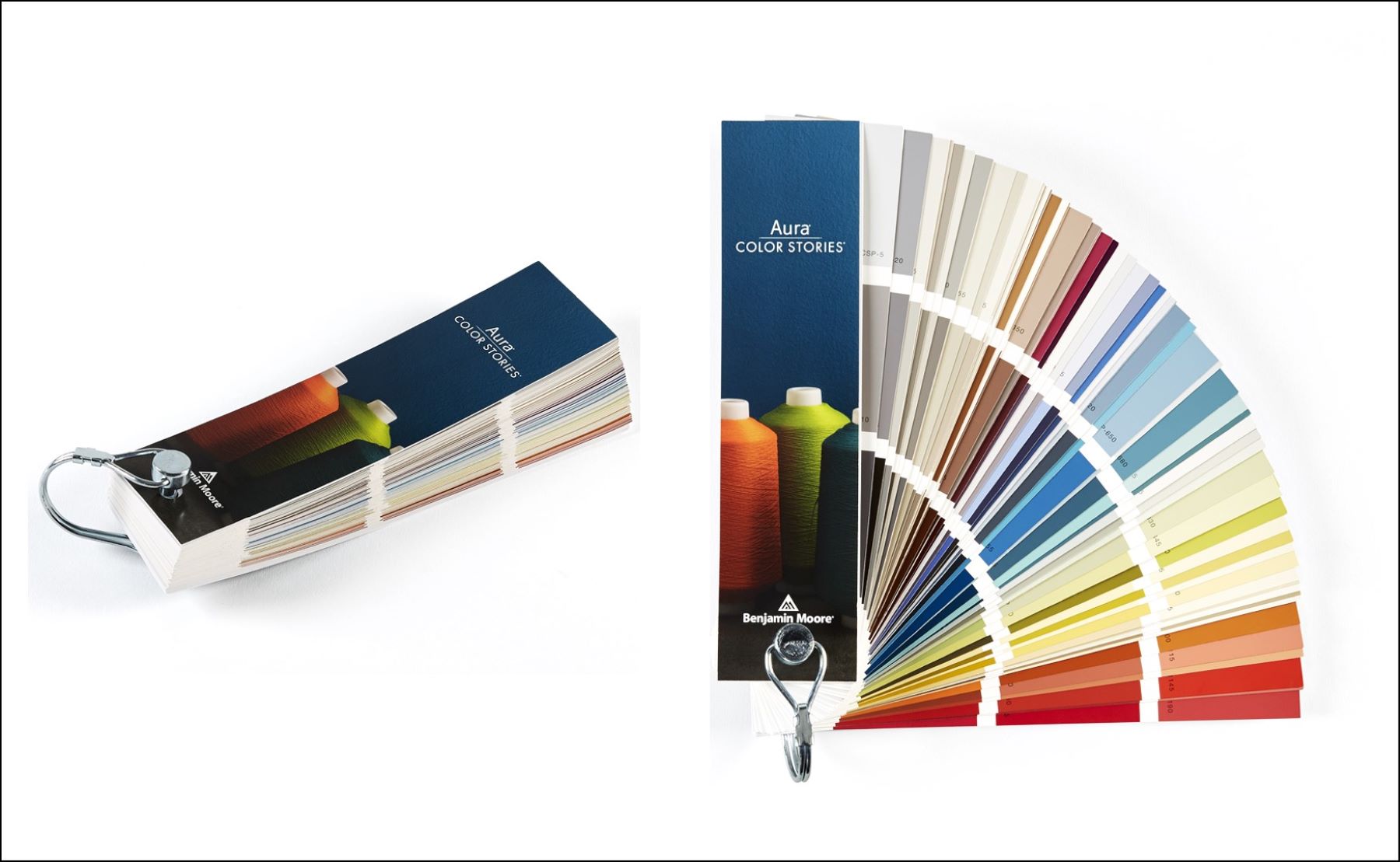 Wygodne, metalowe, rozpinane pierścienie pozwalają odseparować wybrany listek kolorystyczny i przyłożyć go do ściany lub moodboardu.
